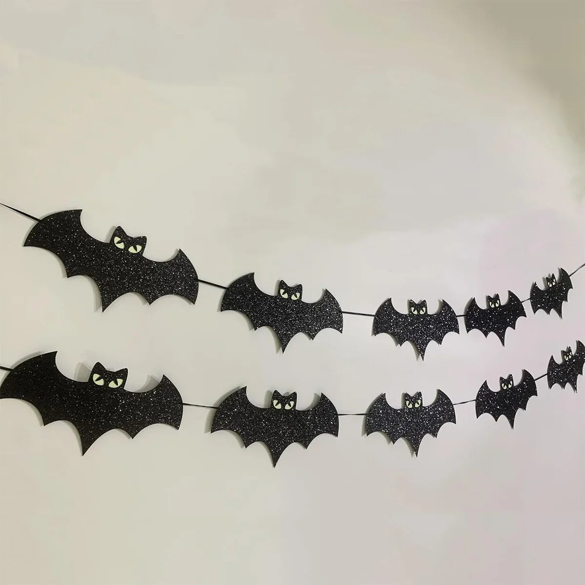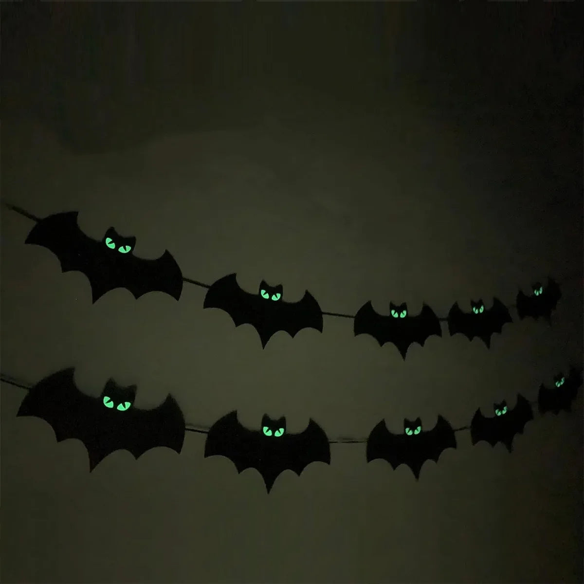 Dekorera hemmet, klassrummet eller festen med denna läskigt fina Halloween-girlang med fladdermöss och lysande ögon. Perfekt för att skapa rätt atmosfär på Halloween-kvällen, oavsett om det är för Trick or Treat, spökfest eller höstmys.